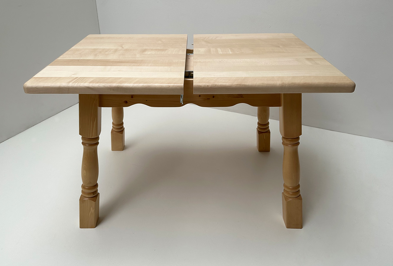 Vierfußtisch Amberg 120/80 cm mit Ahornplatte, mit Einlegeplatte 40 cm Ahorn