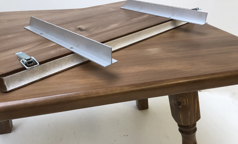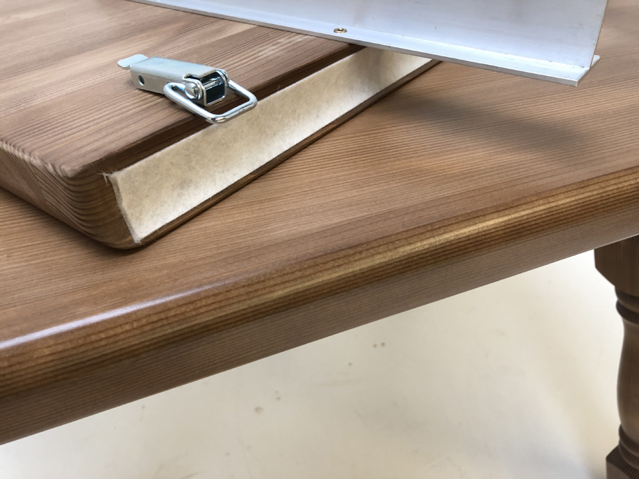 1 Ansteckplatte 40 cm mit angefrästem Konterprofil, Filzeinlage als Kantenschutz, Alu-Anstecksystem und Verriegelung