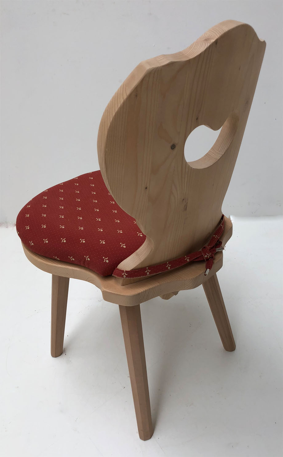 Bauernstuhl Landau mit Polsterplatte, Stoff Kundl rot, jetzt in 38 Lagerstoffen preisgleich