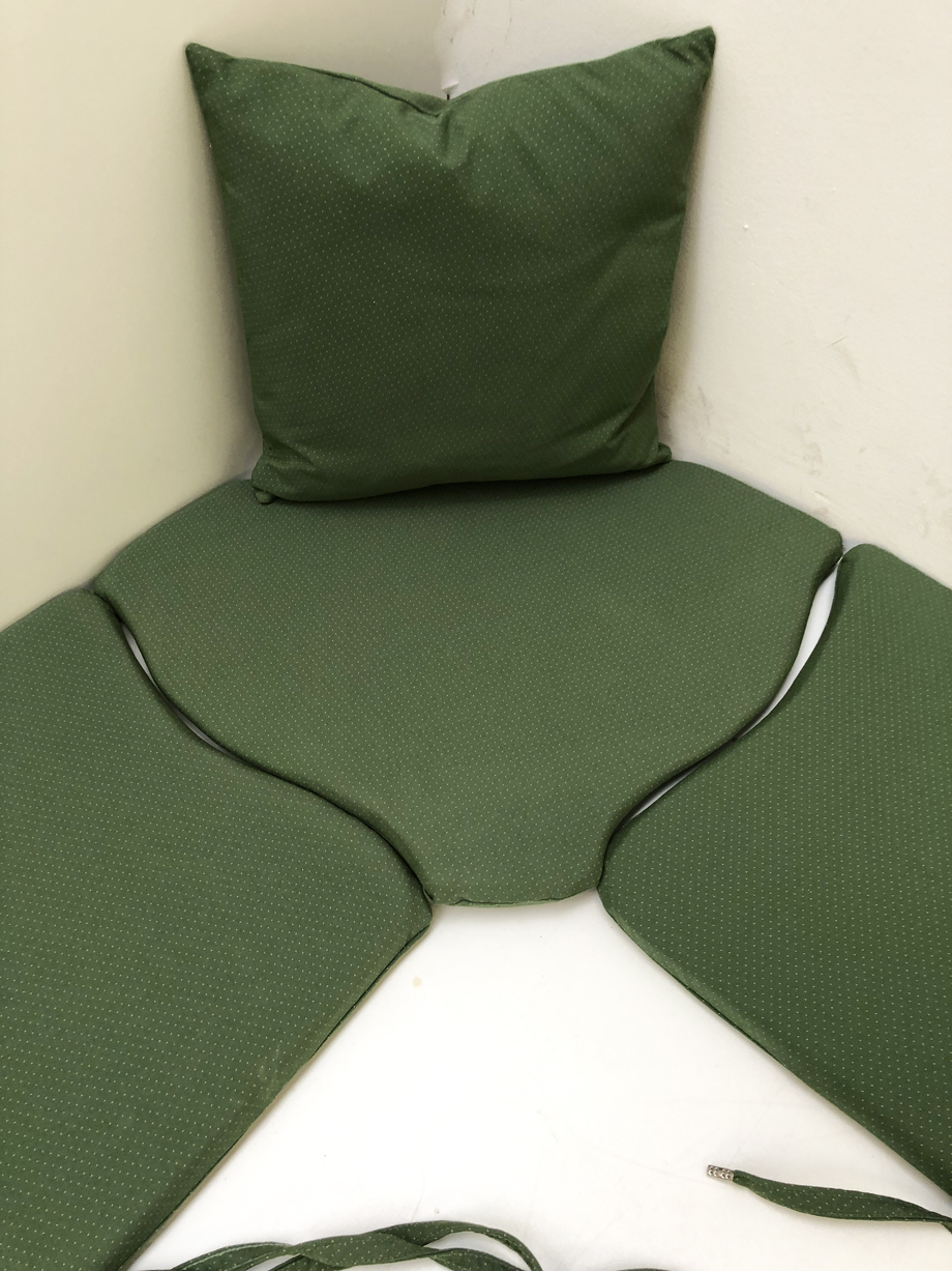 Polstersatz lose genäht für Eckbankgruppe Landau , inkl. 1 Sofa Kissen 40/40 cm gratis !! Alles in Ausführung lose genäht mit Reissverschlüßen zum Abziehen und Bänder an den Stuhlkissen zum Anbinden ! Stabile fest eingenähte Bänder aus dem gleichen Möbelstoff, Enden der Bänder gekrimpt ! Gegen Verrutschen mit Antirutschunterlage !