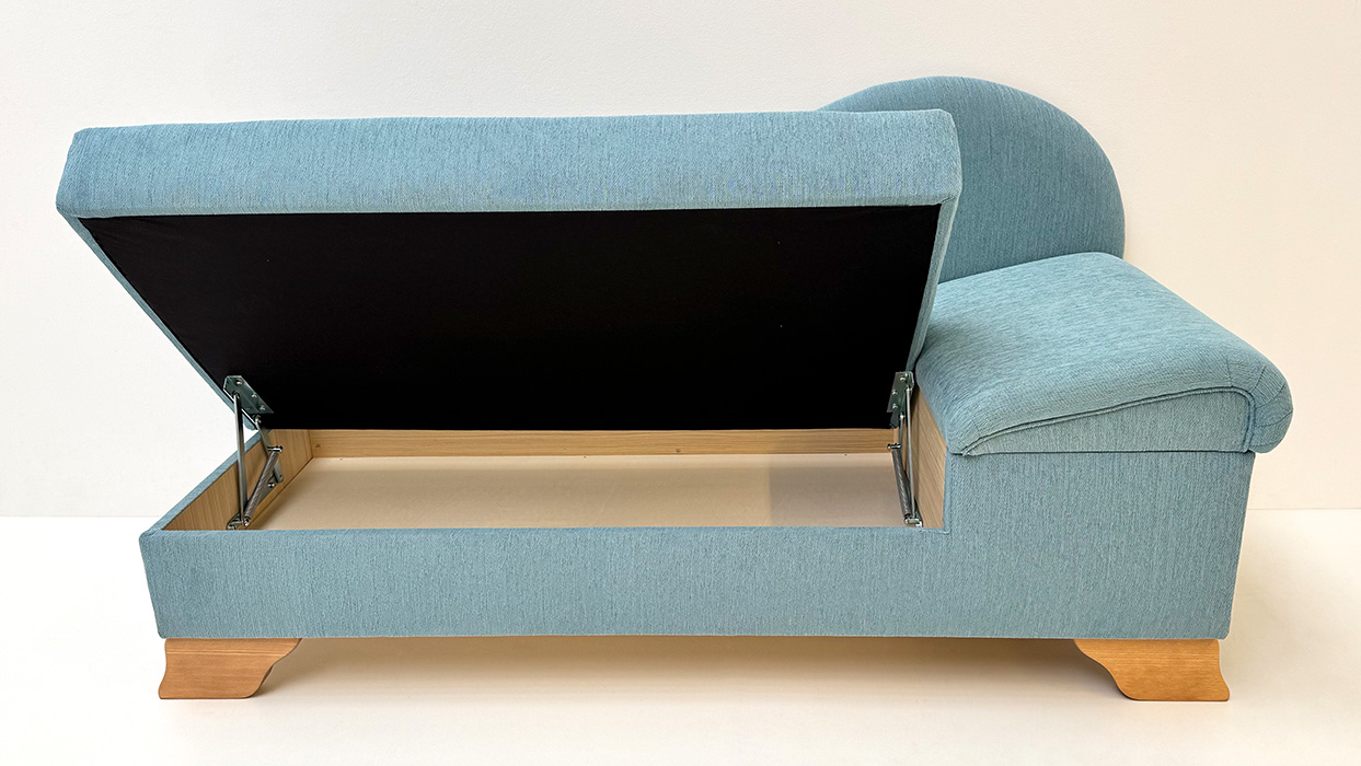 Liege, Kurzsofa Rosenheim, Kopfteil rechts wenn man davorsteht und auf die Liege sieht