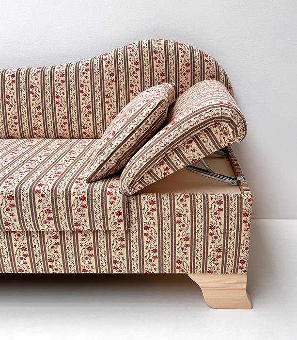 Liege Diwan Rosenheim, freistehend, aufklappbar, Kopfteil verstellbar, Fichtefüße, Verano 644