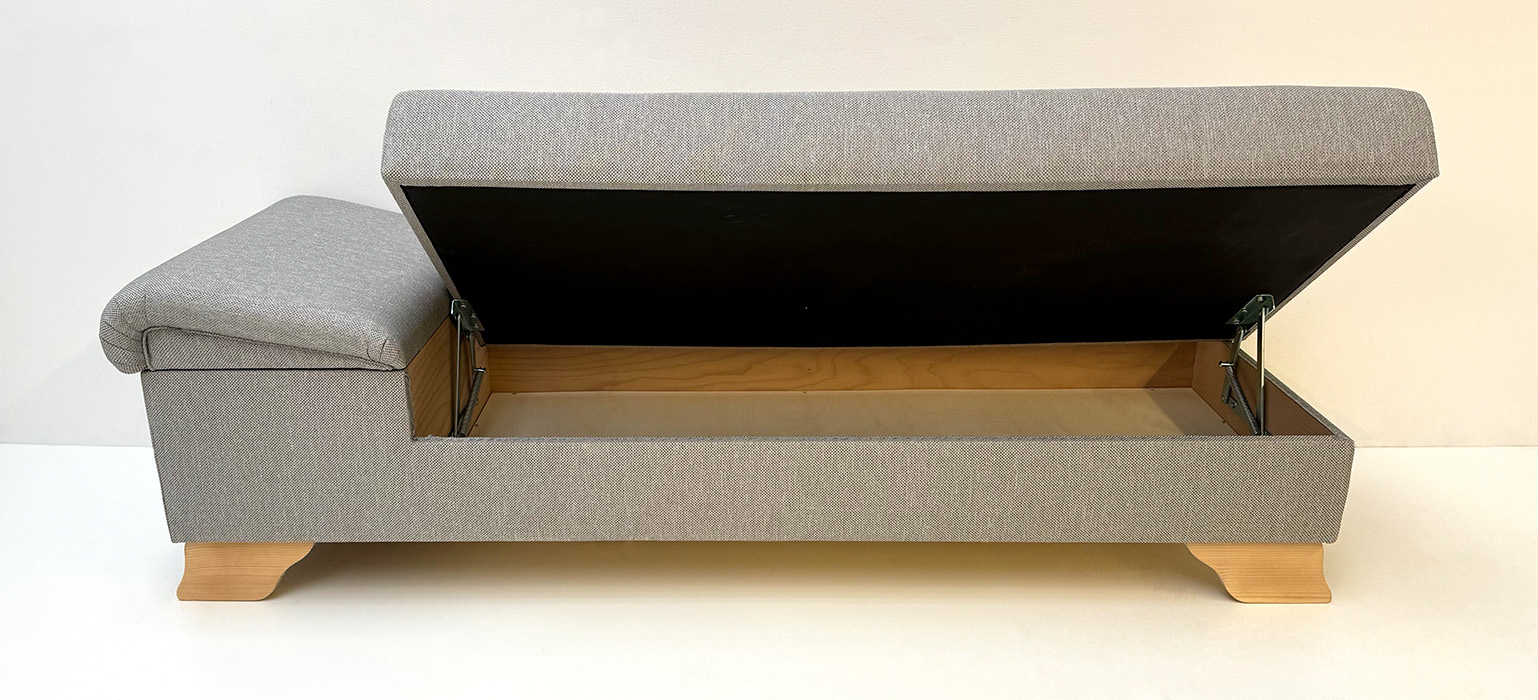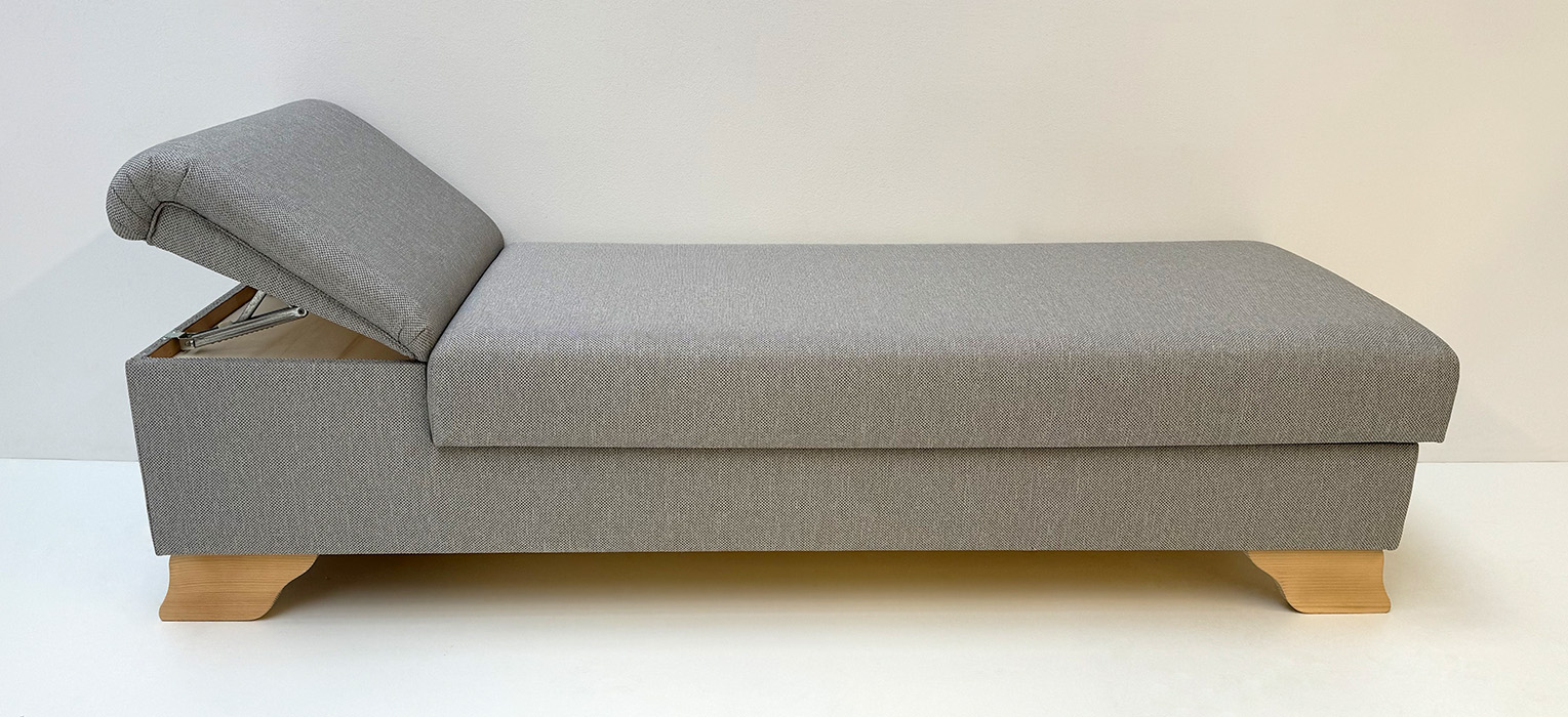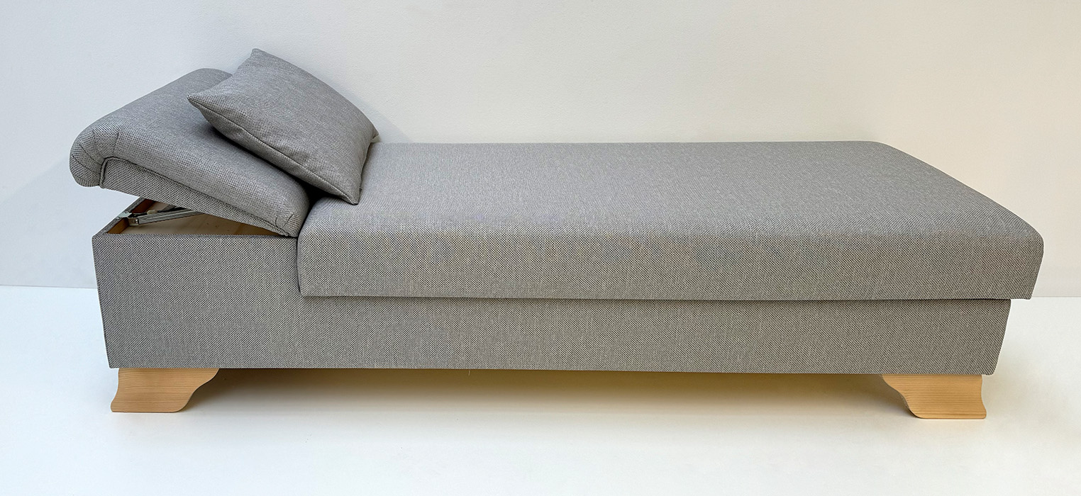 Liege Diwan Rosenheim freistehend, aufklappbar, Kopfteil verstellbar, Fichtefüße gewachst Verano 602