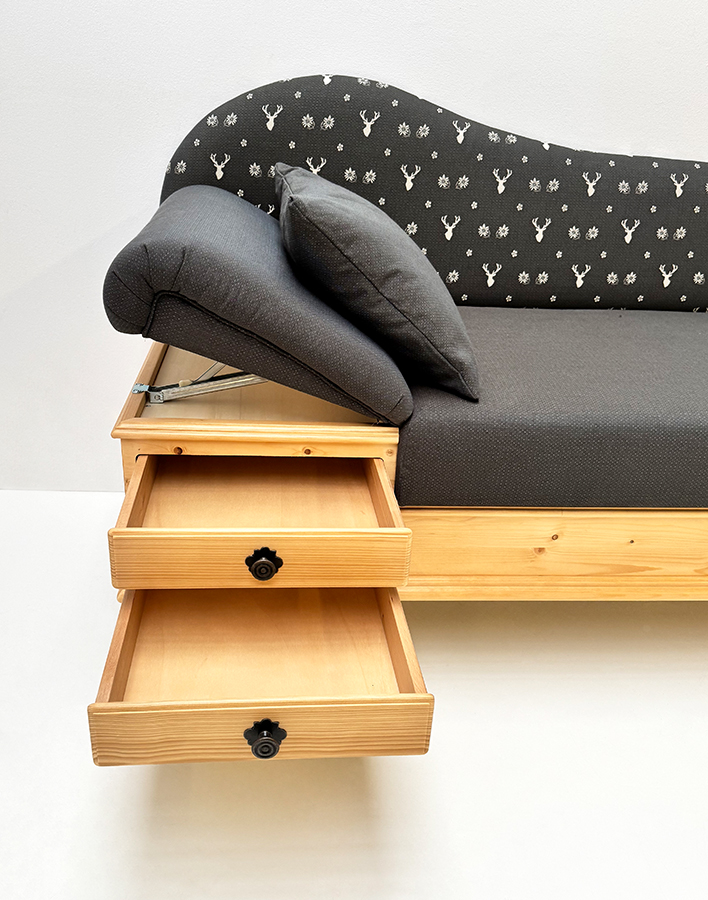 Liege Chiemgau Kopfteil links wenn man davorsteht und auf die Liege sieht