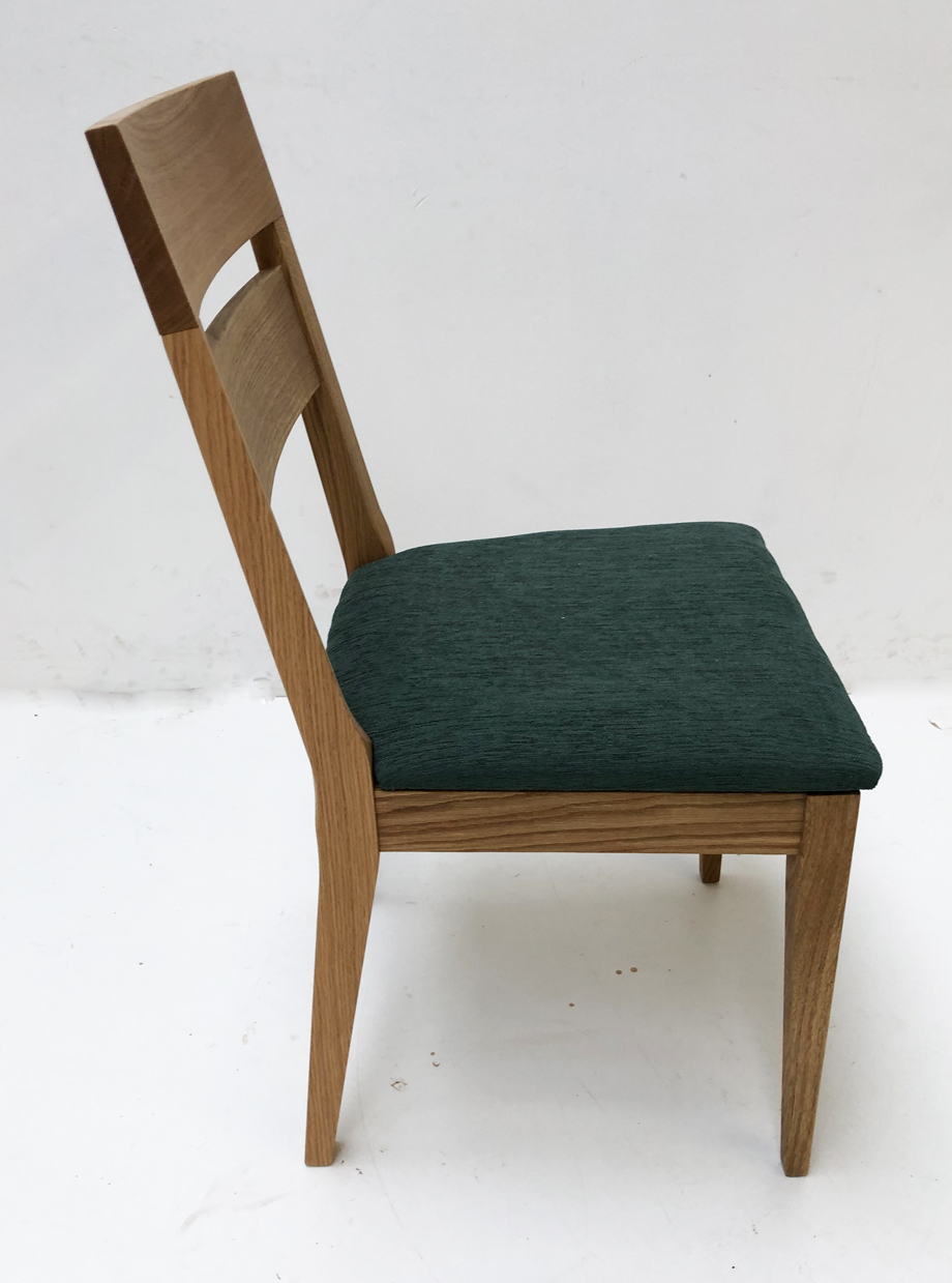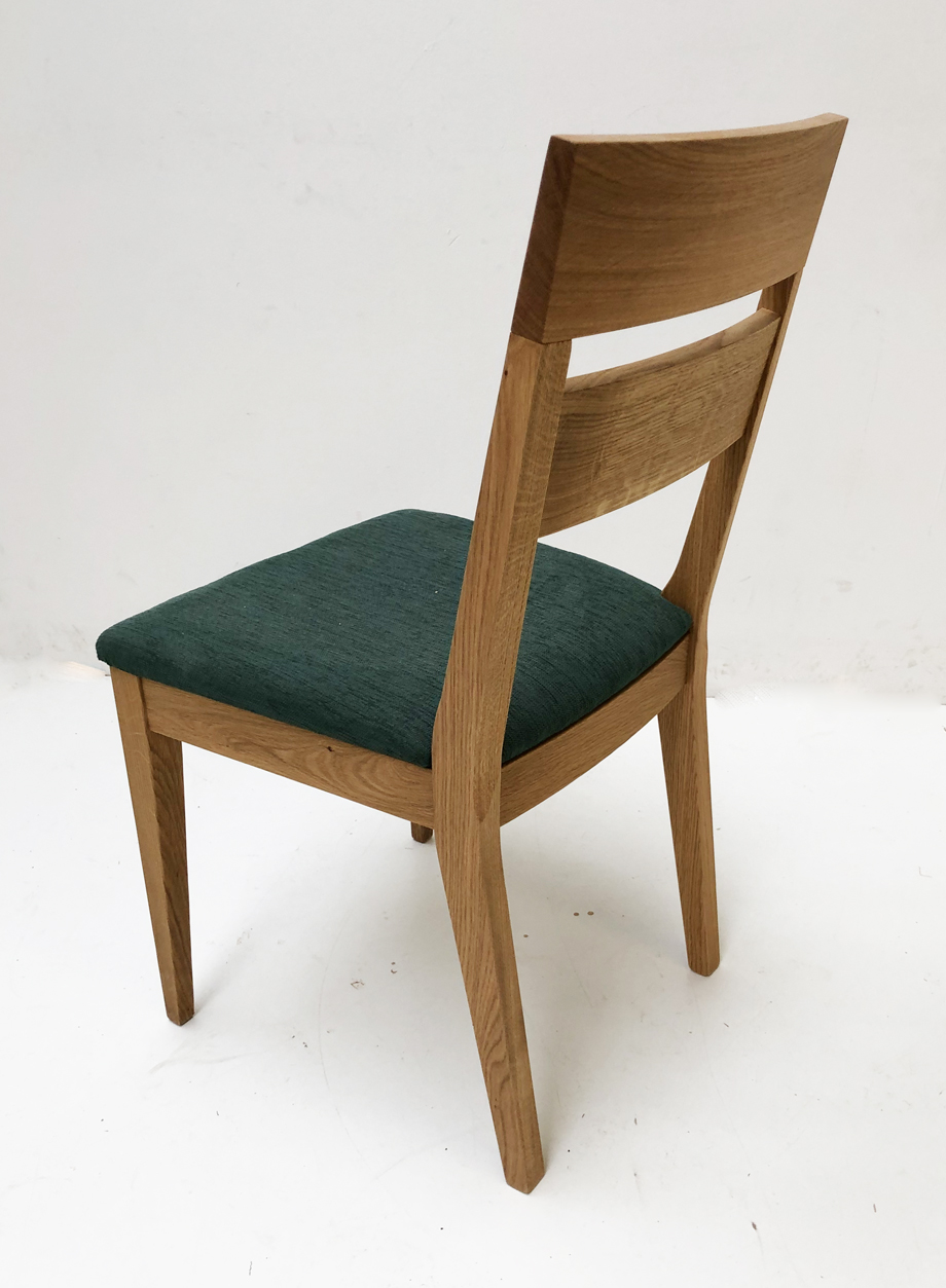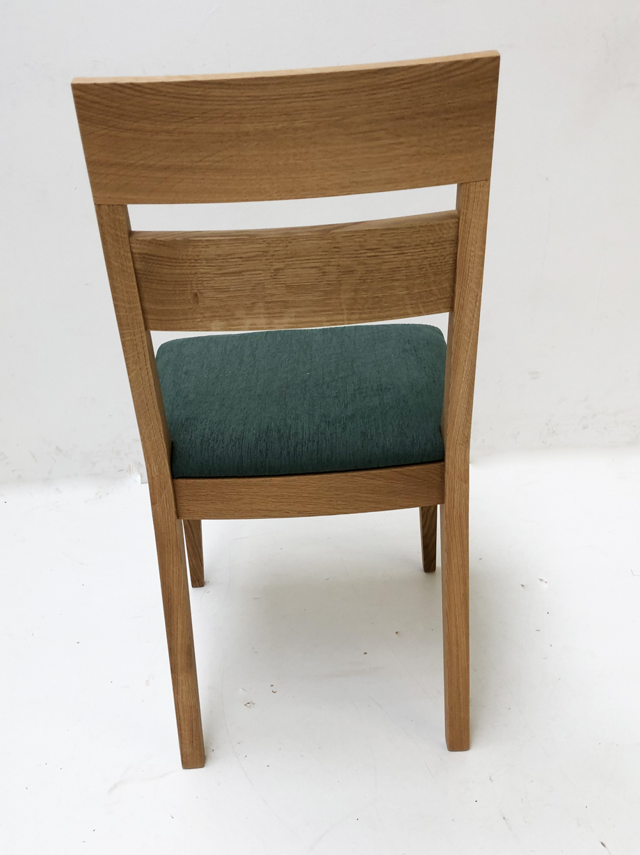 Stuhl Mod. Filippa, Sitz Vollpolster und Lehne Massivholz , Abm: , Höhe 89 cm, Sitzhöhe 45, Breite 46 cm, Tiefe 54 cm, Holz: Wildeiche, Oberfläche: geölt, Festpolster