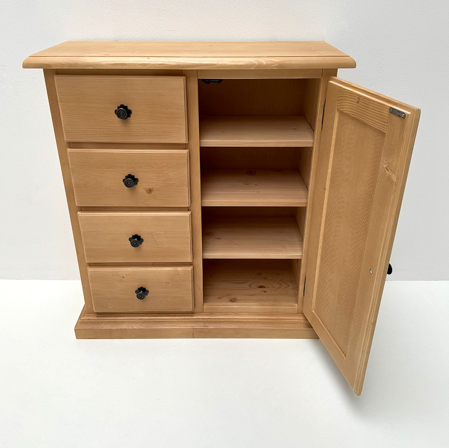 Brotschrank Füssen, 4 Schubladen, 1 Türe, Ausführung Tölz mit Sockel