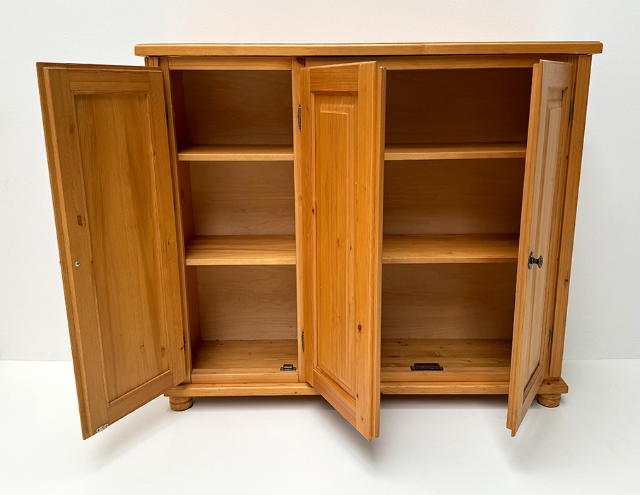 Abm: 120/126/33 cm, Inneneinteilung: Links Doppeltüre , 2 Fachböden Rechts Einzeltüre, 4 Fachböden Fichte massiv, Farbton Rosner gebeizt und gewachst, In antik gebeizt und lackiert