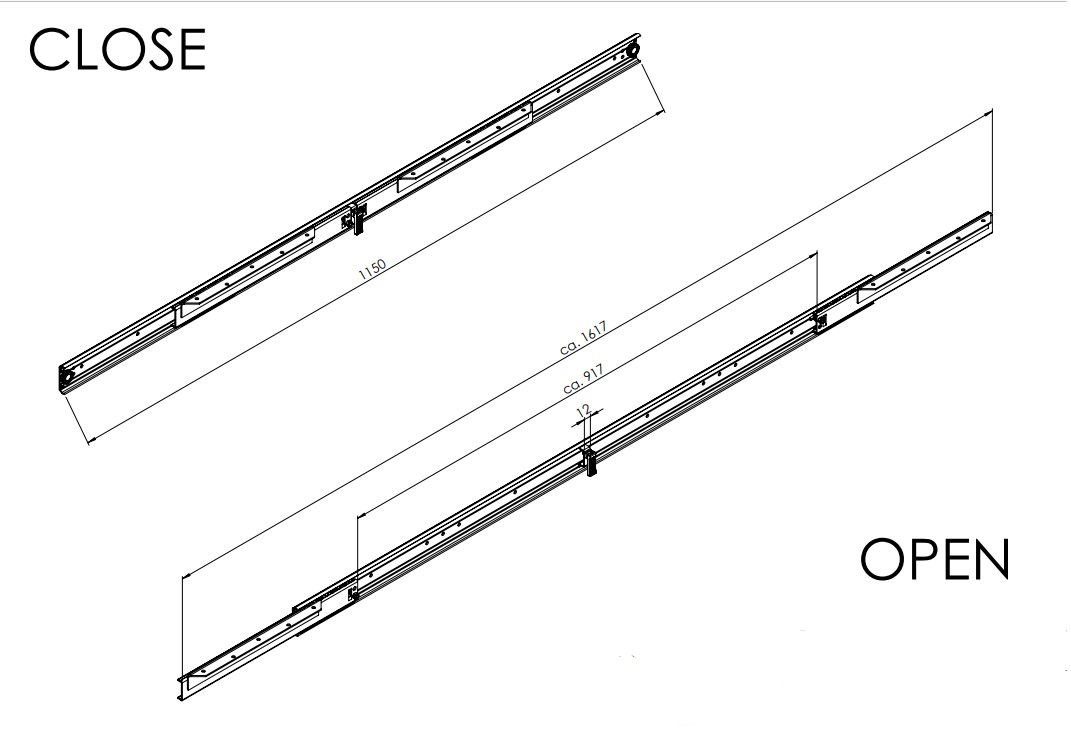 einfacher Tischauszug aus Metall für 2 Einlegeplatten max 80 cm, Einbaumaß 115 cm