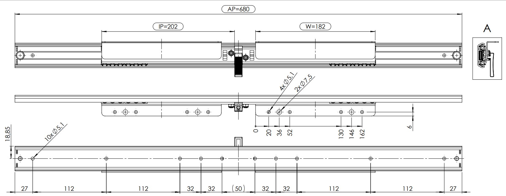 Tischauszug Metall 68-52-93, 1 Einlegeplatte 50 cm, synchron, mit Bremse