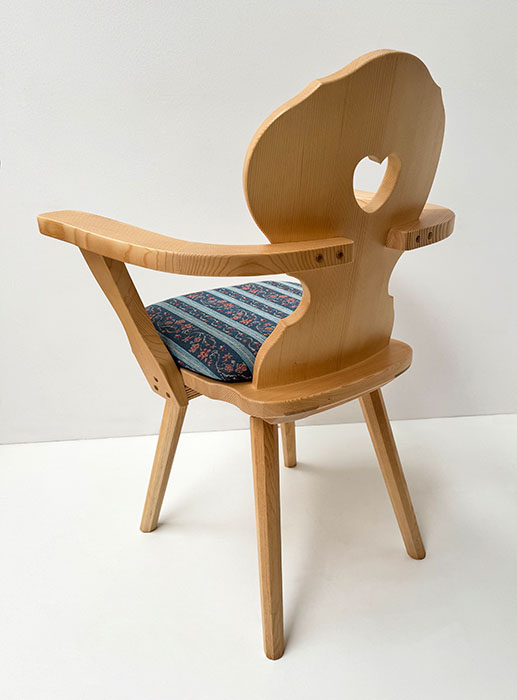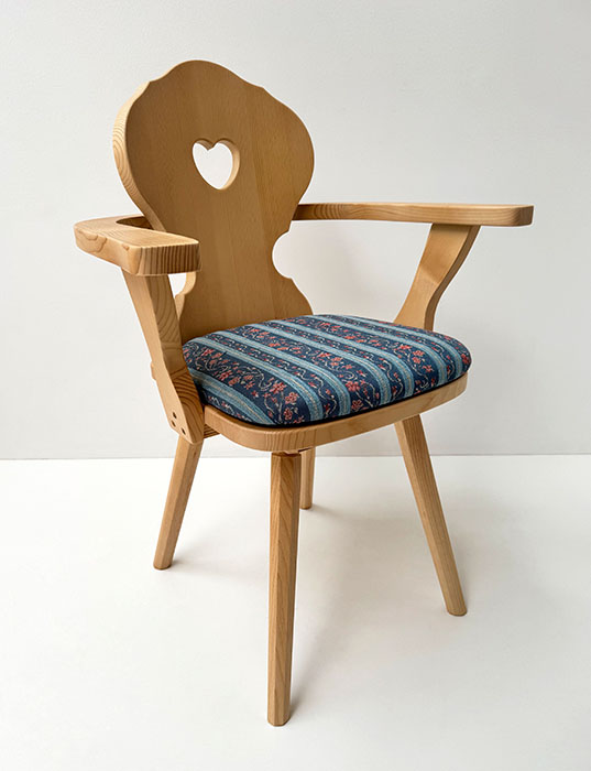 Armlehnstuhl, Bauernstuhl Munich, 8Kant, Fichte, Rosner lackiert, Polsterplatte Waidhaus blau
