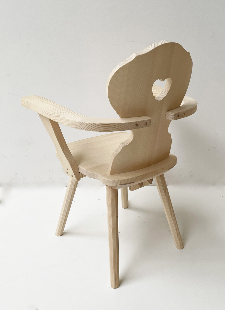 Abm. 69 x 52 x 88 cm, B/T/H , Lehne mit Herz, Fichte massiv, Roh , unbhandelt