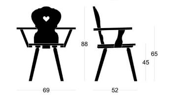 Abm. 69 x 52 x 88 cm, B/T/H , Lehne mit Herz, Fichte massiv, Rosner gewachst