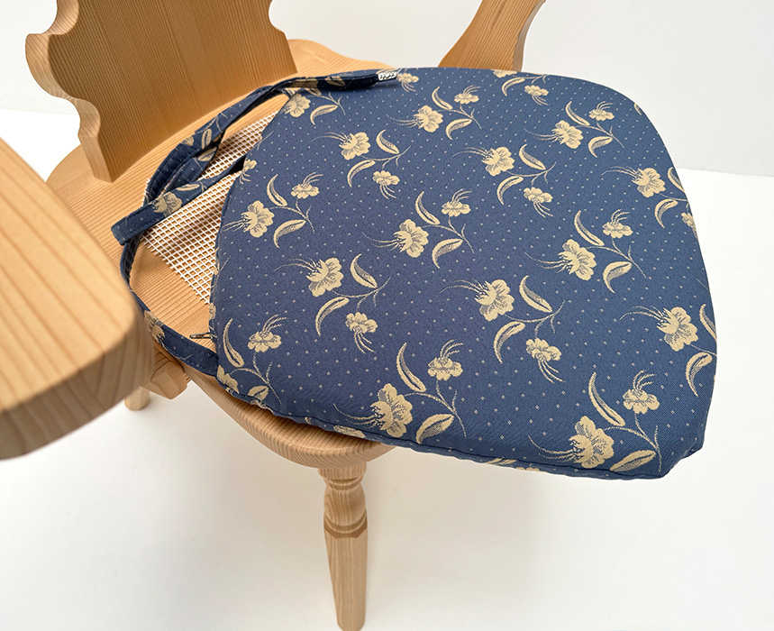 Armlehnstuhl, Vienna Wien, gedrechselter Fuß, Fichte lackiert, Polster genäht Kössen blau