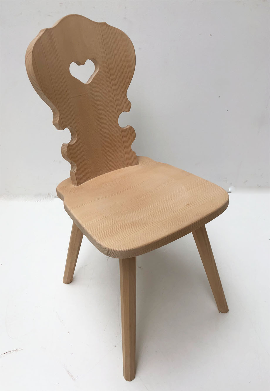 Abm. 41 x 52 x 88 cm, B/T/H , Lehne mit Herz, Fichte massiv, roh, SP5, Sitz mit gefräster Kehlung