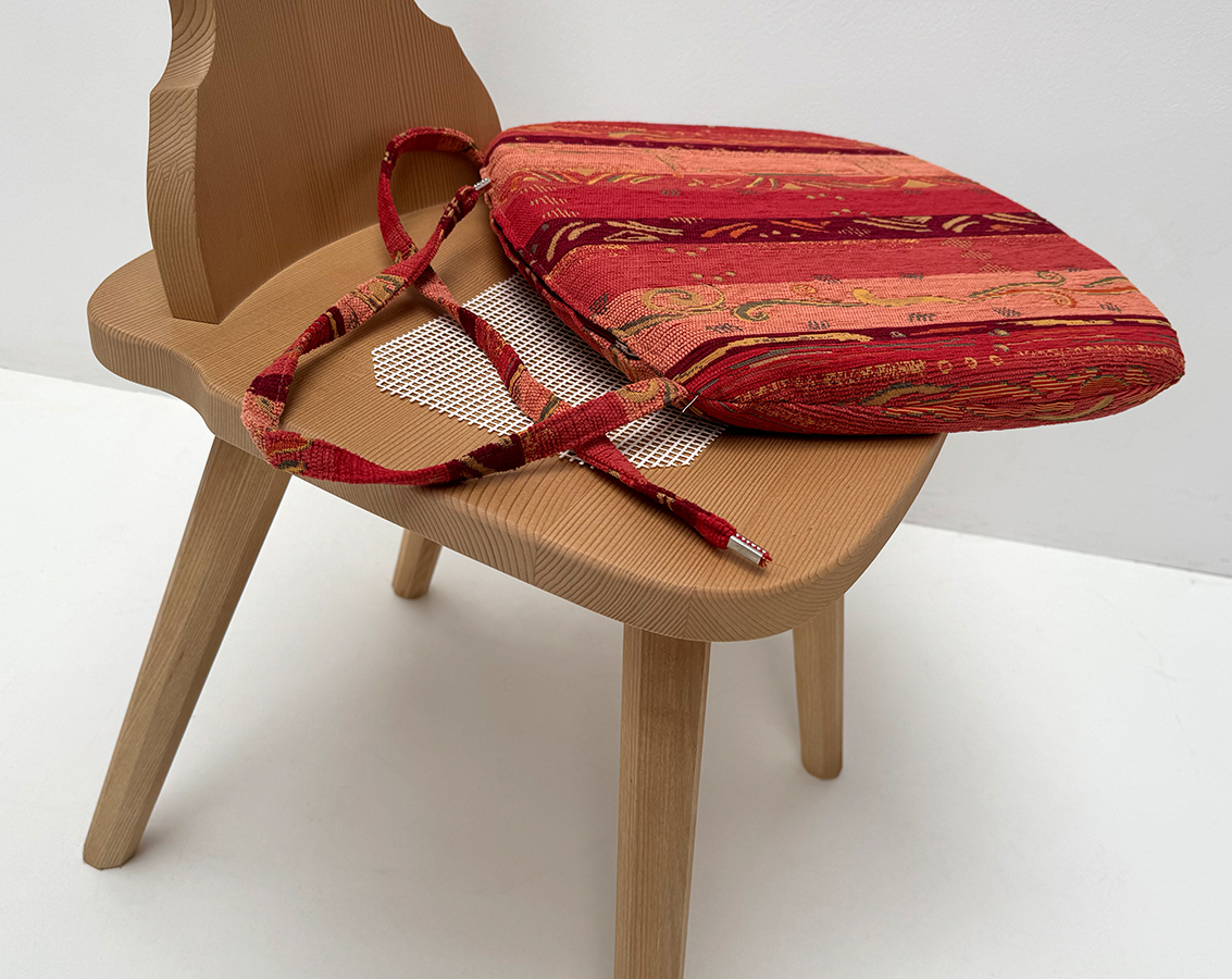inkl. Stuhlkissen lose genäht, mit Bänder zum Anbinden ! Stabile fest eingenähte Bänder aus dem gleichen Möbelstoff, Enden der Bänder gekrimpt ! Gegen Verrutschen mit Antirutschunterlage !