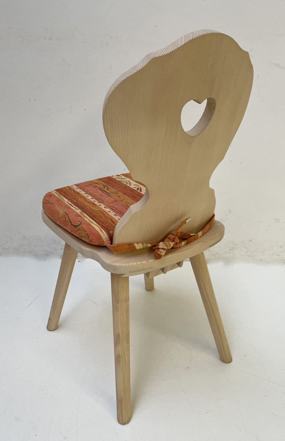 Bauernstuhl Munich, 8K, Fichte, Rosner gewachst, Kissen genäht, Pocking terra