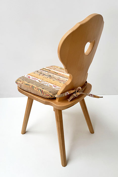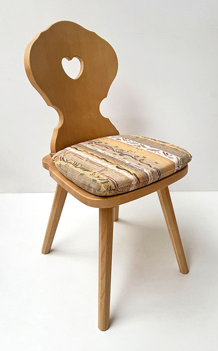 Bauernstuhl Munich, 8K, Fichte, Rosner gewachst, Kissen genäht, Pocking terra