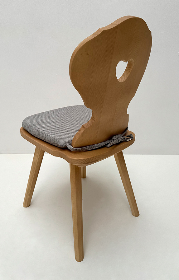 Bauernstuhl Munich, München, gedrechselter Fuß, Fichte, Rosner lackiert, Polster genäht, Salzburg MU