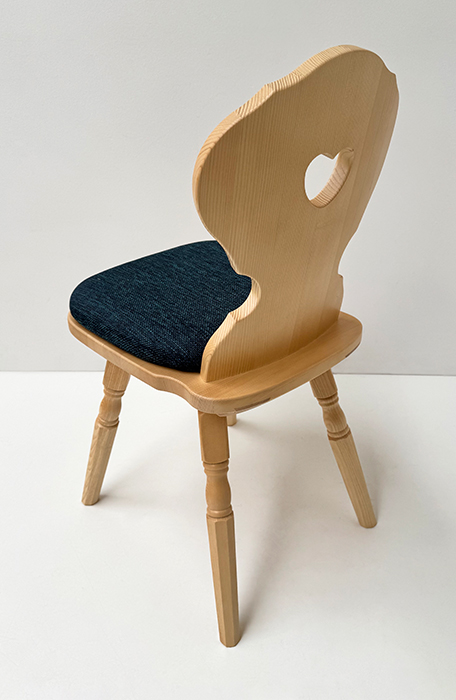 Bauernstuhl Munich, München, gedrechselter Fuß, Fichte, Rosner lackiert, Polster genäht, Salzburg MU