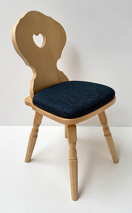 Abm. 41 x 52 x 88 cm, B/T/H , Lehne mit Herz, Fichte massiv, Füsse gedrechselt, Rosner gebeizt und lackiert