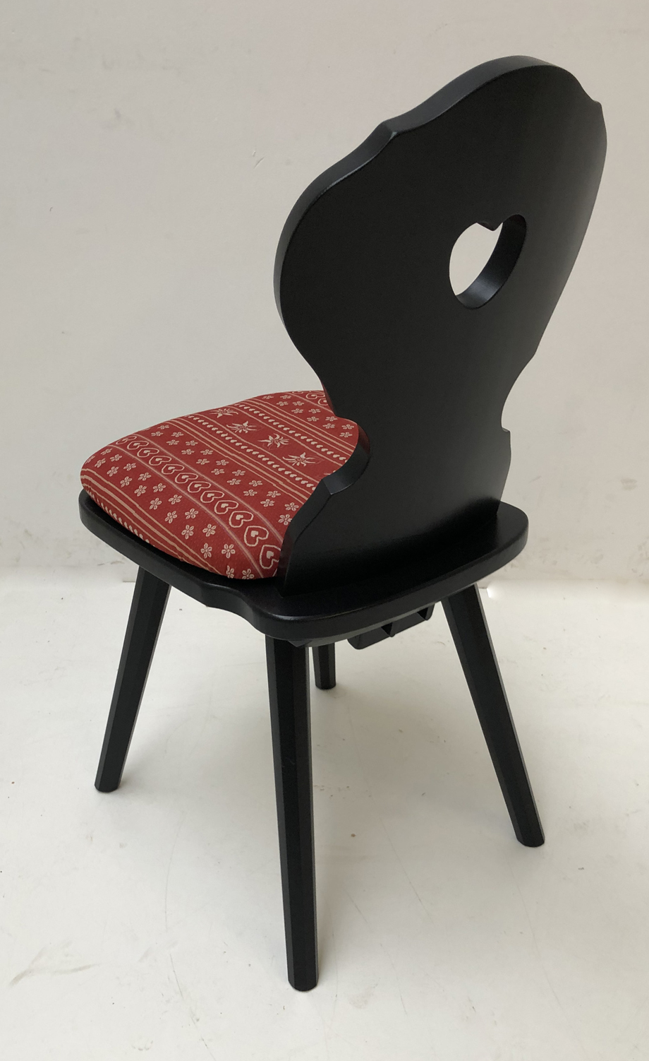 Abm: 41 x 52 x 88 cm, B/T/H, Lehne mit Herz, Fichte massiv, deckend schwarz 9011 lackiert