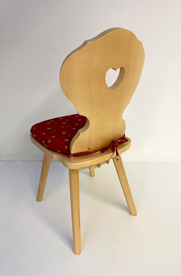 Abm. 41 x 52 x 88 cm, B/T/H , Fuß 8K, Lehne mit Herz, Fichte massiv, Rosner gebeizt und lackiert