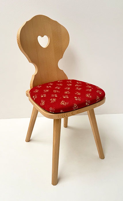 Abm. 41 x 52 x 88 cm, B/T/H, Füße in 8-Kant, Lehne mit Herz, Fichte massiv, Rosner lackiert