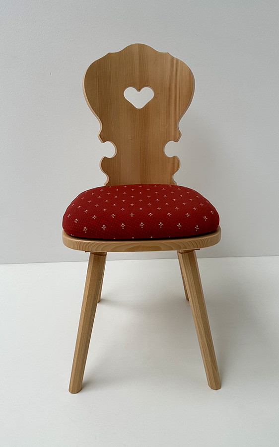 Abm. 41 x 52 x 88 cm, B/T/H , Lehne mit Herz, Fichte massiv, roh, SP5, Sitz mit gefräster Kehlung
