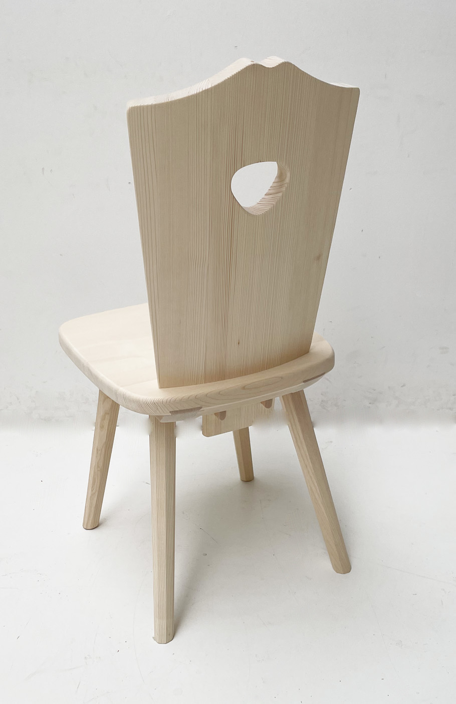 Bauernstuhl WL- 5610 mit gekehlter Lehne, Herz, Fichte roh