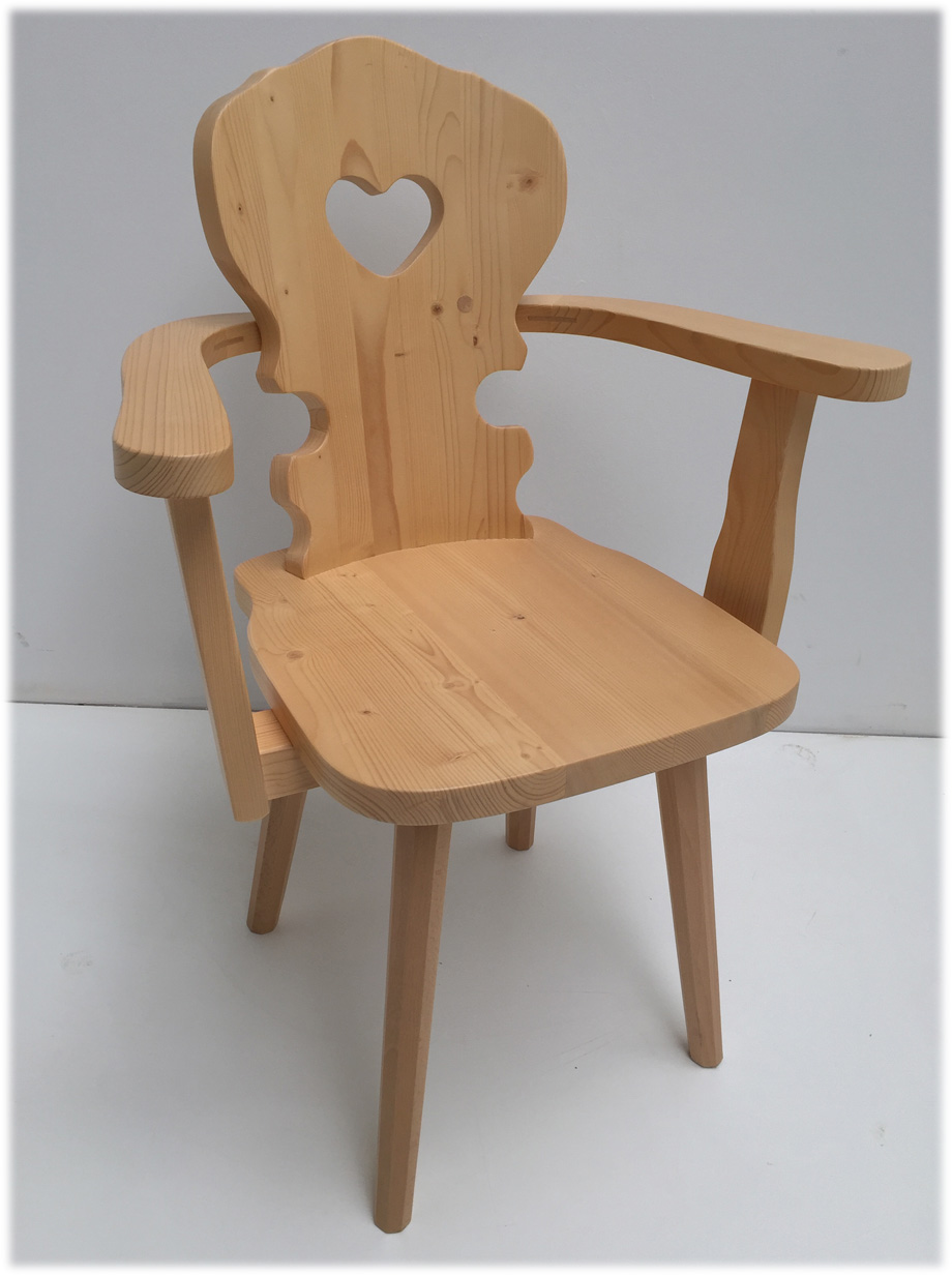Fichte massiv , Oberfläche roh, unbehandelt !, auch mit Armlehnen gegen Aufpreis lieferbar ! Lehne mit Herz