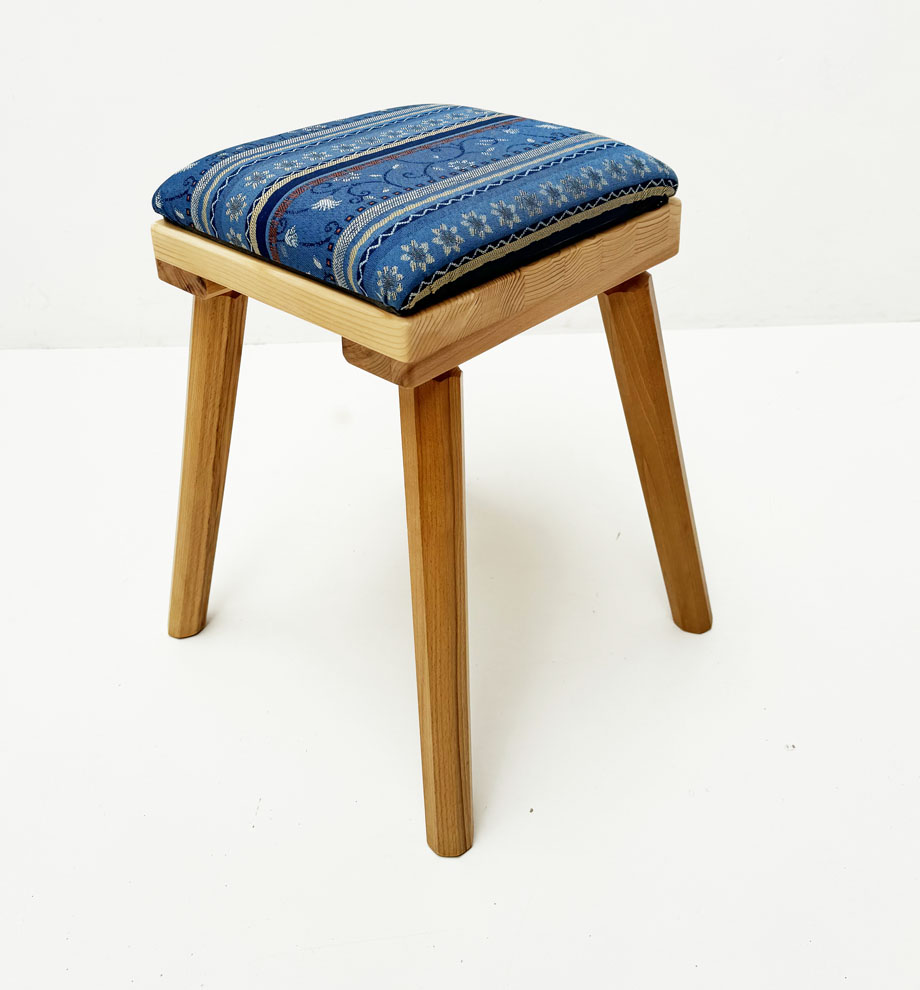 Bauernstuhl Holz Hocker Amberg Landau mit Eingriff, Polster genäht, Salzburg Munzert 47