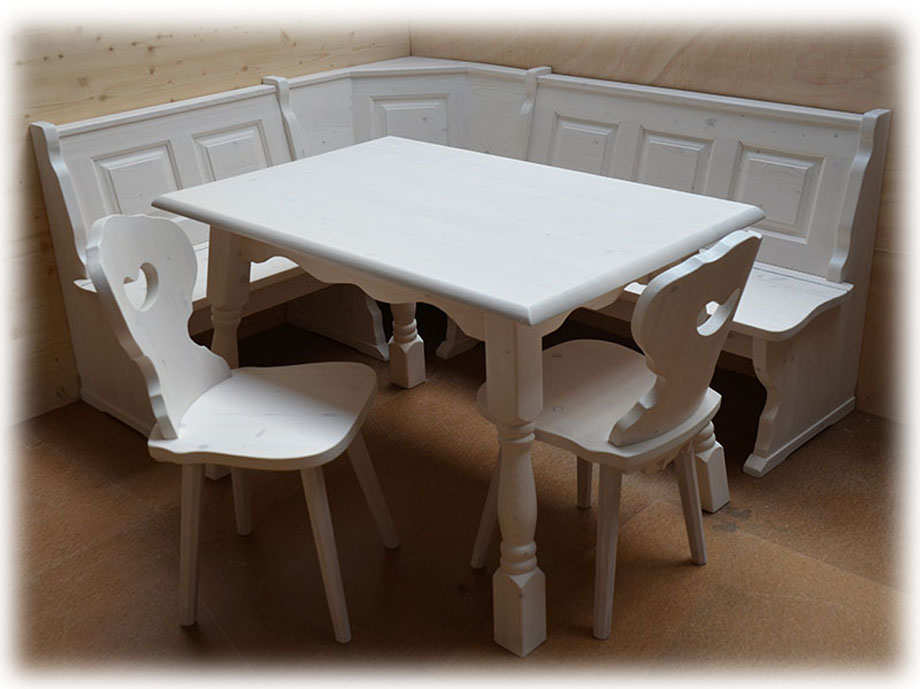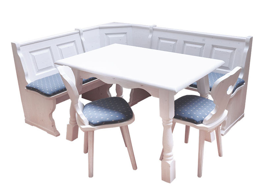 Eckbankgruppe Amberg klein bestehend aus: Eckbank 150/185 cm, Gesamthöhe 85 cm, mit Truhen, 4-Fußtisch 120/80 cm, Platte massiv, ohne Auszug, mit Schublade, 2 Stühle Mod. Amberg, Massivsitz, (Wils 1-13),