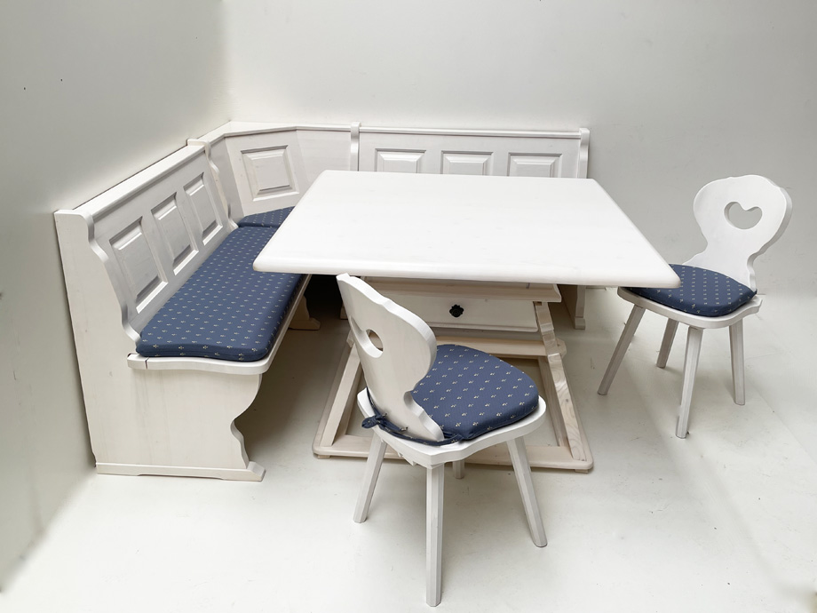 Eckbankgruppe Landau 195/195 m. Jogltisch 120/120 cm in weiß lasiert