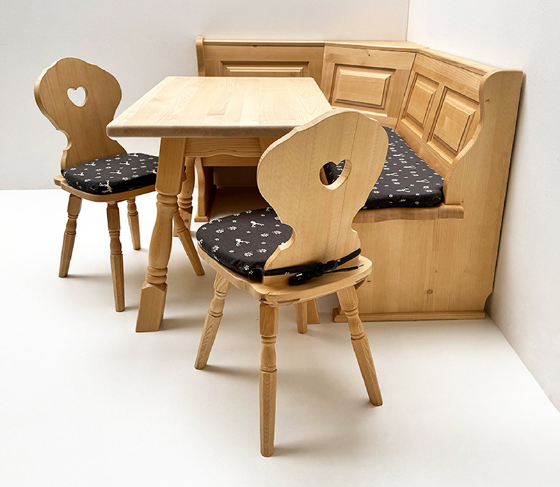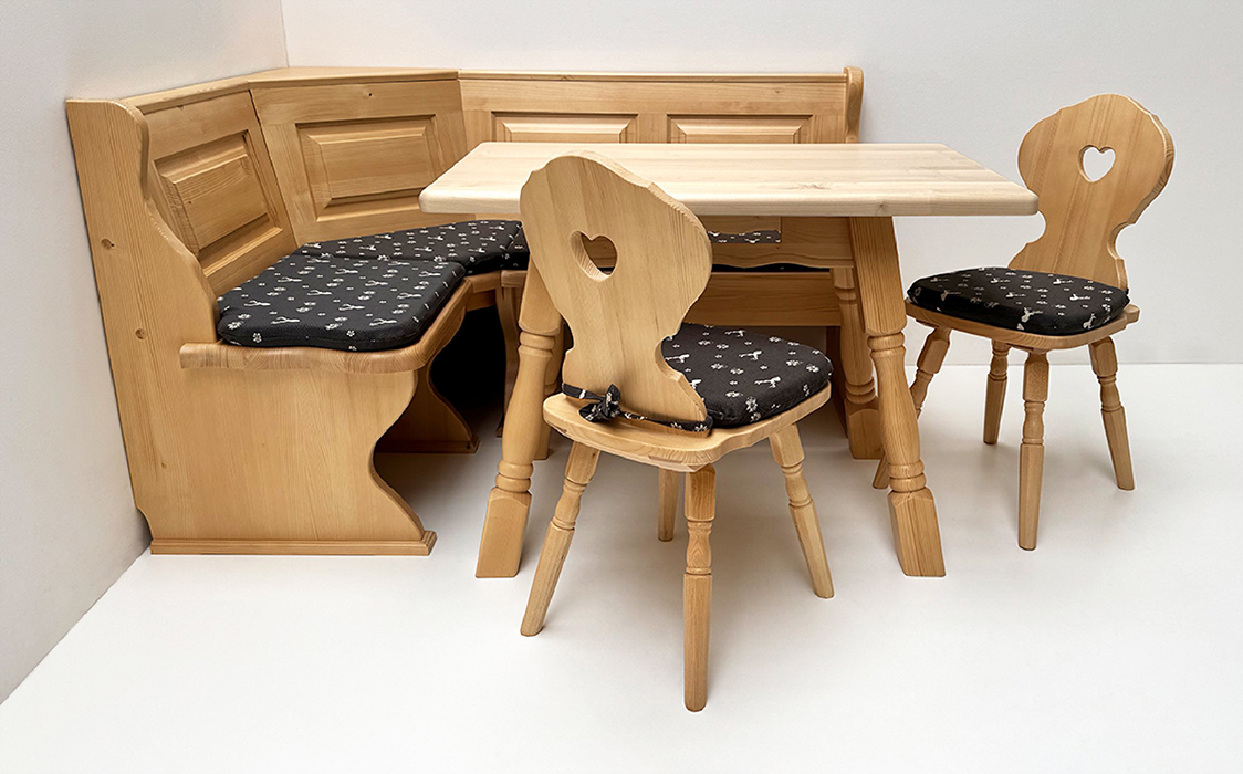 Eckbankgruppe LINDAU 125/165 Fichte, Tisch 4510-Amberg, Stühle Landau, Polstersatz Salzburg