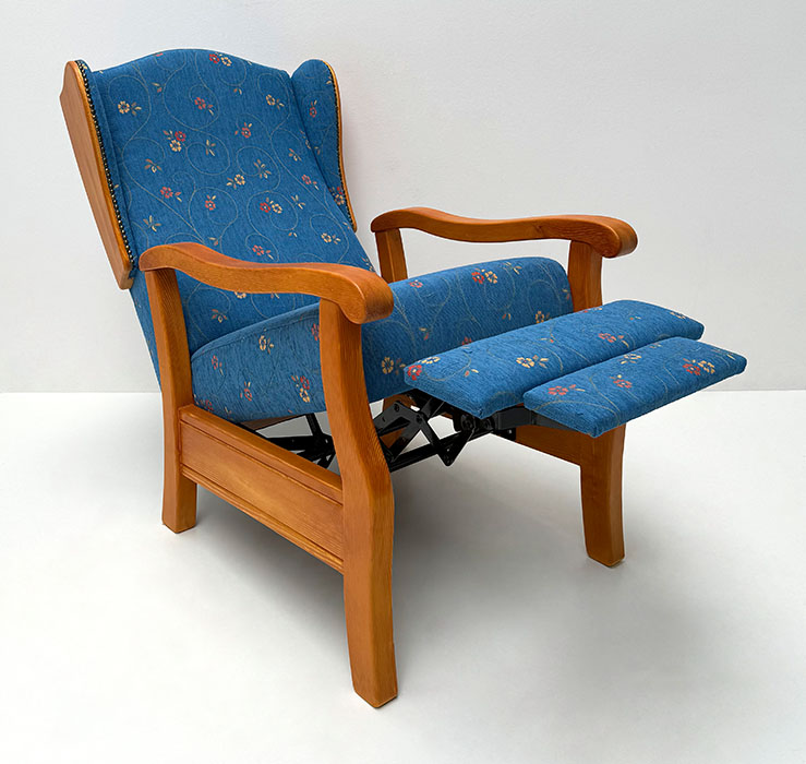 Fernsehsessel TV-Sessel Inzell mit Funktion, Honig 07, Armlehnpolsterung, Stoff Pöchlarn Ranke blau