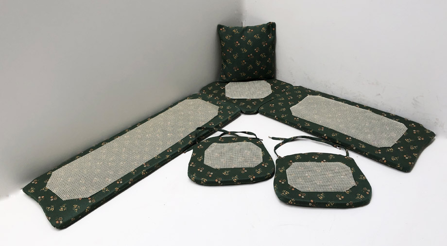 Polstersatz lose genäht für Eckbankgruppe Amberg klein 185/150 cm,, inkl. 1 Sofa Kissen 40/40 cm gratis !! Alles in Ausführung lose genäht mit Reissverschlüßen zum Abziehen und Bänder an den Stuhlkissen zum Anbinden ! Stabile fest eingenähte Bänder aus dem gleichen Möbelstoff, Enden der Bänder gekrimpt ! Gegen Verrutschen mit Antirutschunterlage !