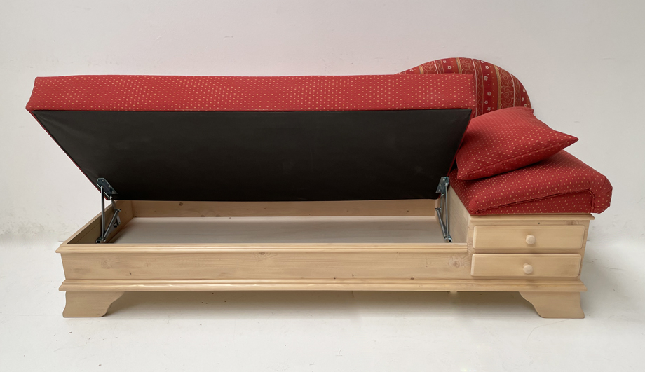 Liege Chiemgau, Kopfteil rechts wenn man davorsteht und auf die Liege sieht :