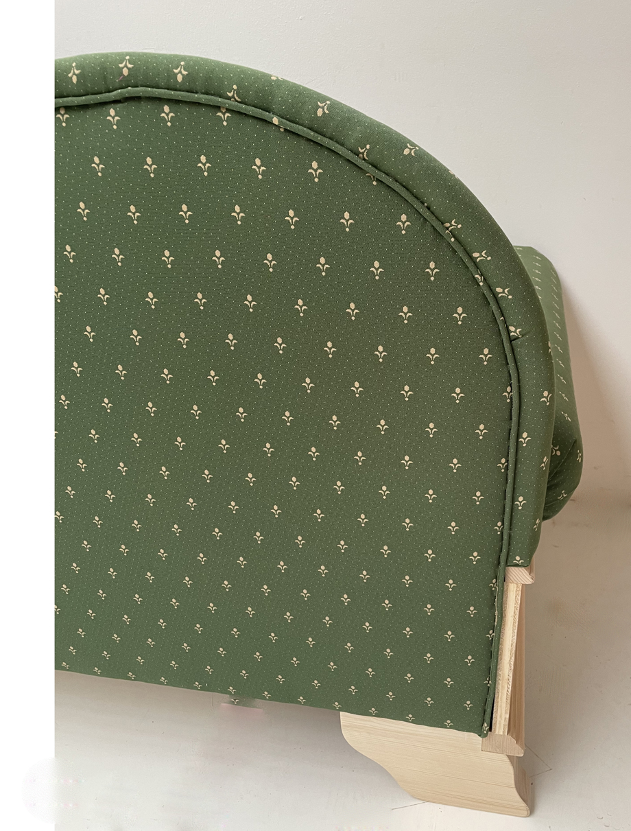 Möbelstoff Frankenland Kundl grün (224051/71); zusätzlich Rückenbespannung in Echtstoff mit eigenähtem Keder !