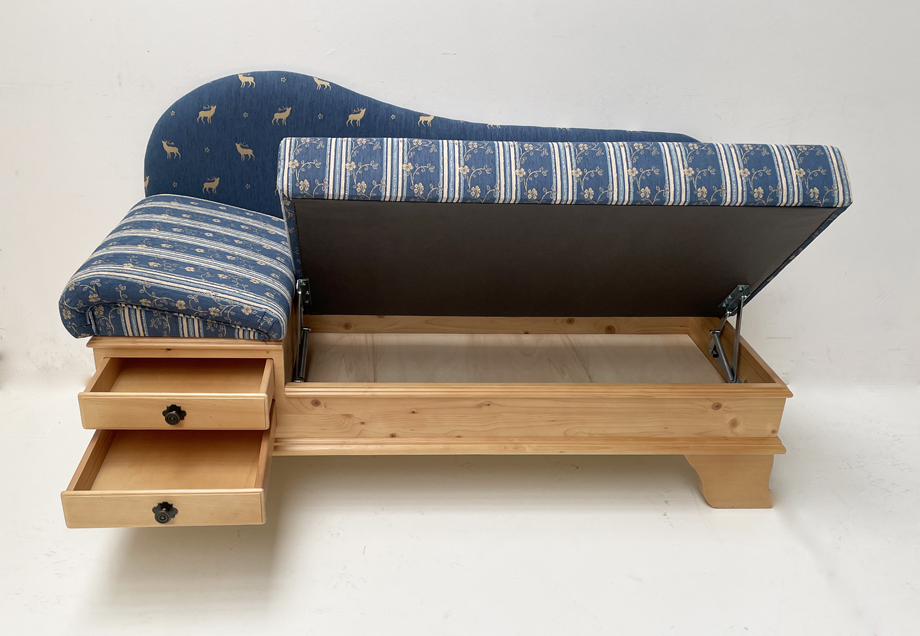 1 Liege Chiemgau , Sonderlänge 165 cm !!! Kopfteil im Raster verstellbar, Sitz