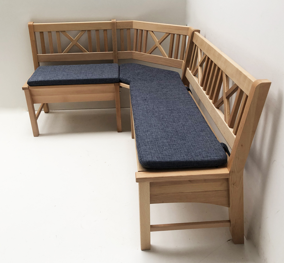 Eckbank Bodensee, mit Truhen, Gesamthöhe 87 cm, wechselseitig stellbar !, Buche massiv natur lackiert