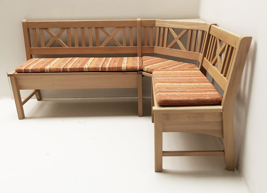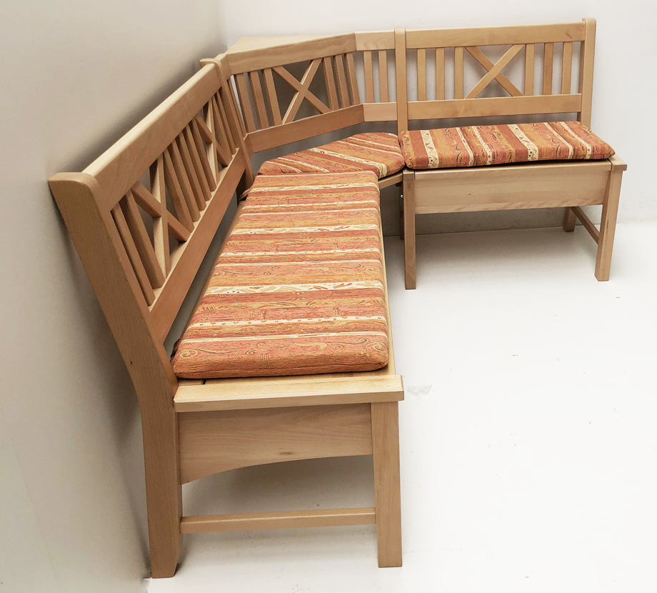 Eckbank Bodensee, mit Truhen, Gesamthöhe 87 cm, wechselseitig stellbar !, Buche massiv natur lackiert