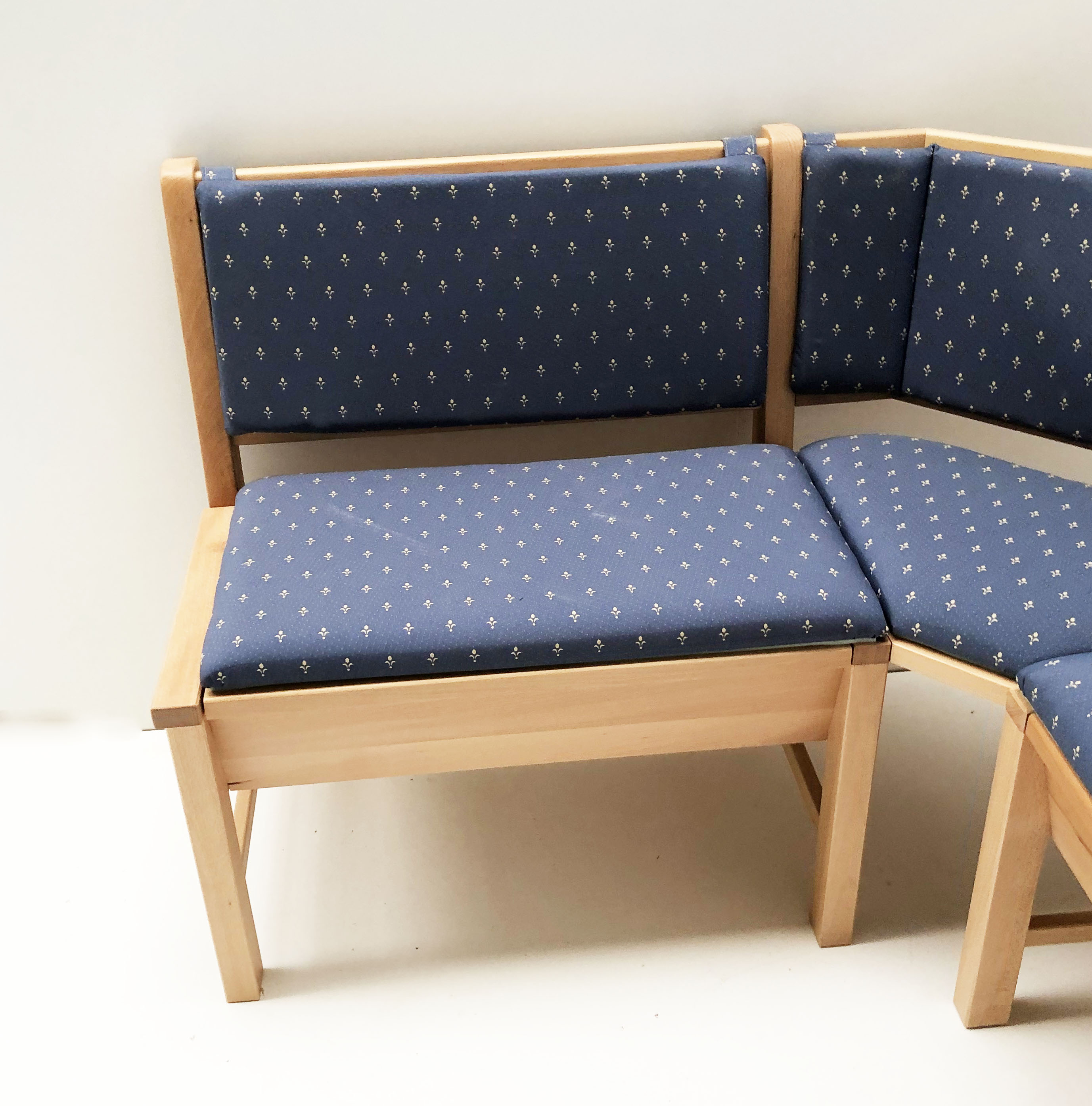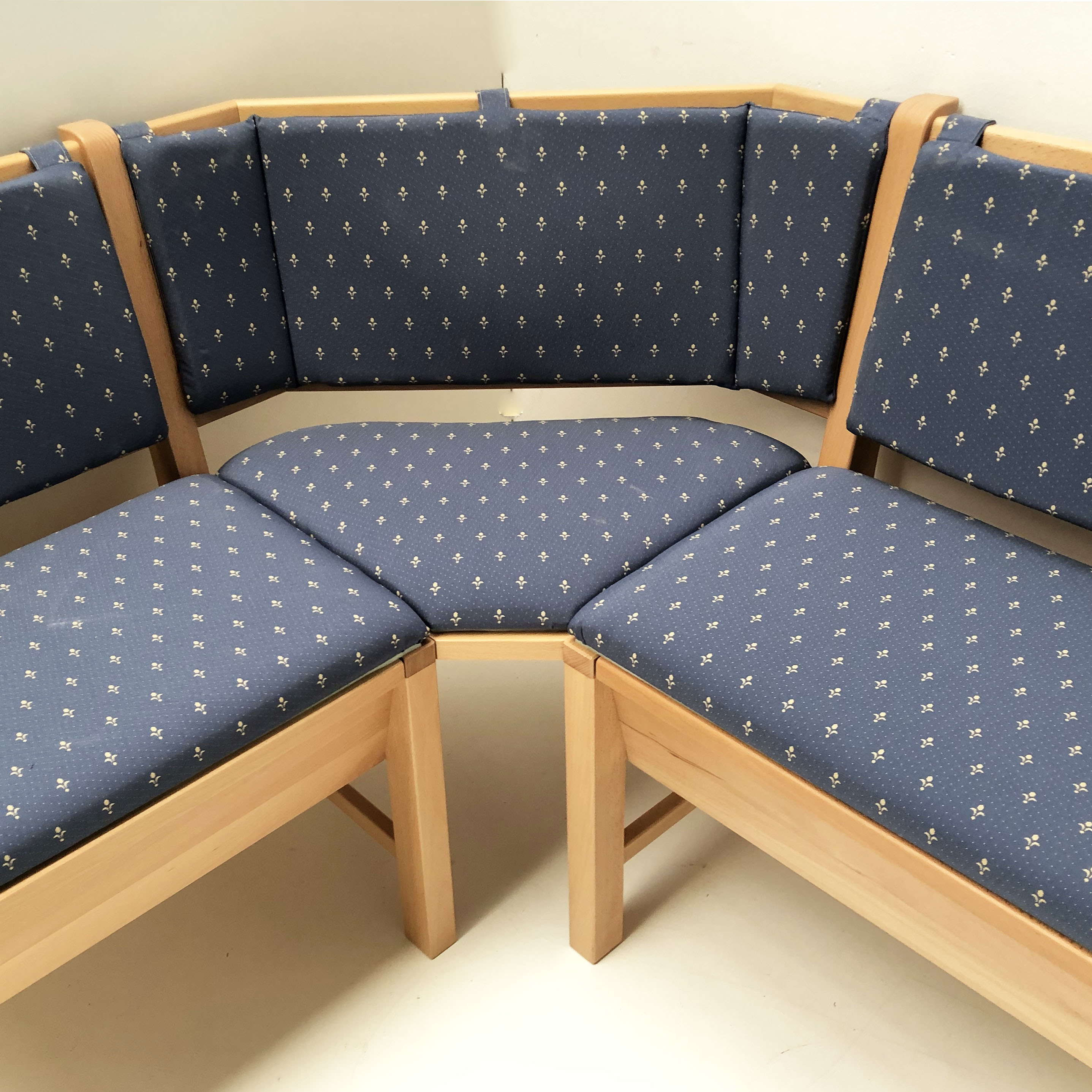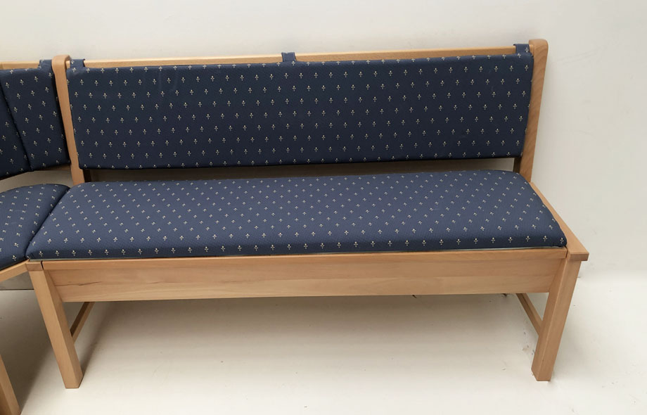 Eckbank Bodensee, 179/204 cm, Buche Polstersatz Polsterplatte, Rückenkissen genäht, Kundl blau