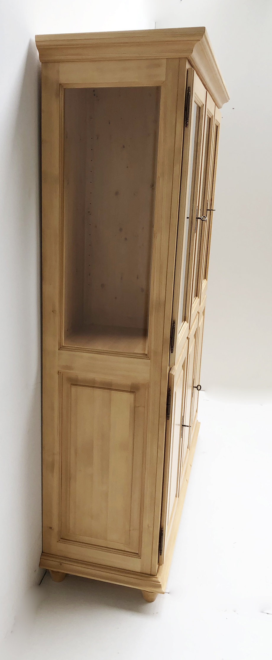 Oberteil 3 Glastüren, Unterteil 3 Holztüren, Links Doppeltüren, rechts Einzeltüre