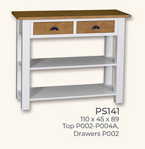 Beistelltisch Konsole, 2 Schubladen, Kiefer massiv zweifarbig, 110/45