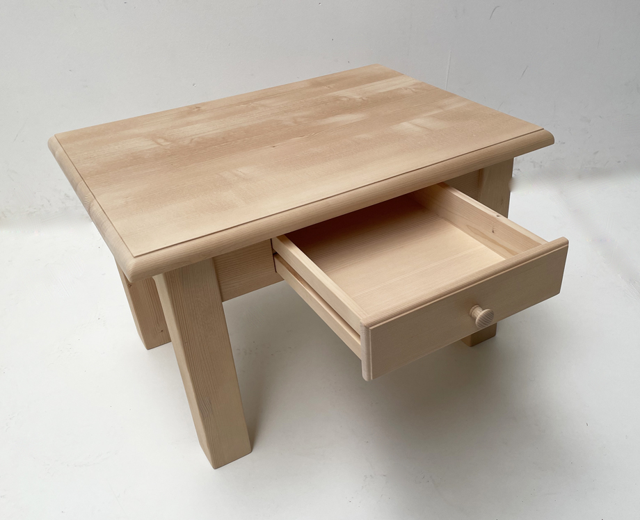 Couchtisch Füssen 60/80 cm, stärkere Füße 8/8 cm, m. Schubl. , Plattenprofil Halber Atdt. Stab