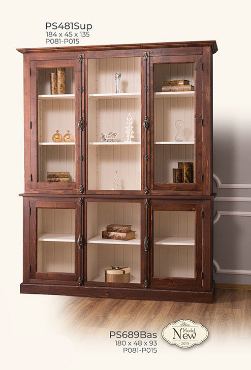 Vitrine, 4 Glastüren, Kiefer massiv