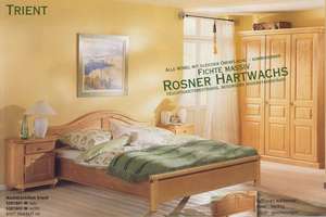 bestehend aus: Schrank 3trg. 162/218/61 cm Doppelbett 180/200 cm, Kopfteilhöhe 91,2 cm Fußteilhöhe 74 cm Fußteilhöhe Hotelausführung 44,7 cm Nachtkästchen links B/H/T 58/64/37 Nachtkästchen rechts Andere Kombinationen sind selbstverständlich möglich ! Fichte massiv, Oberfläche Rosner Hartwachs (Wils 2-12)