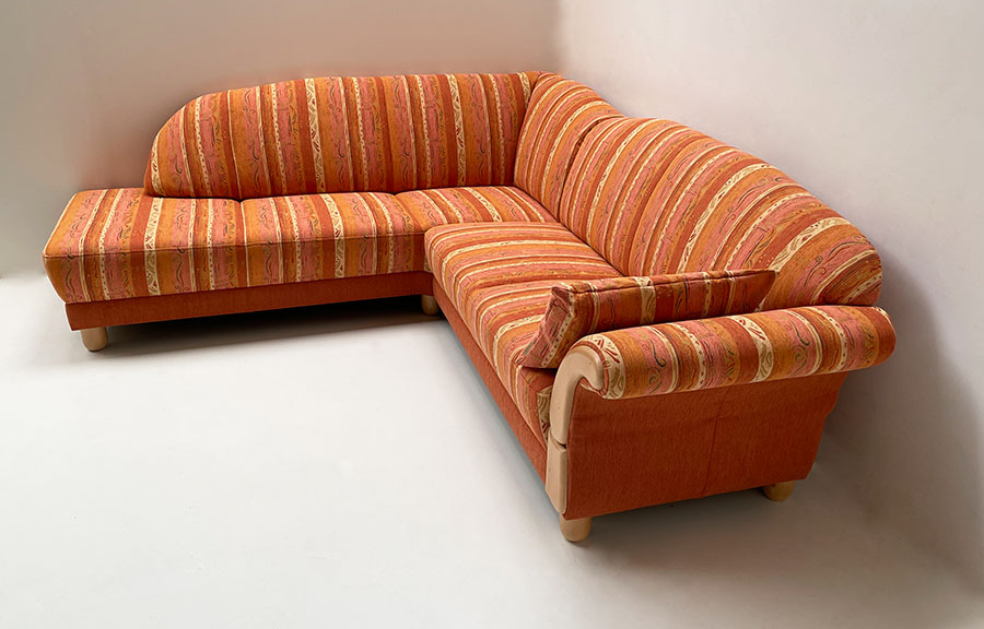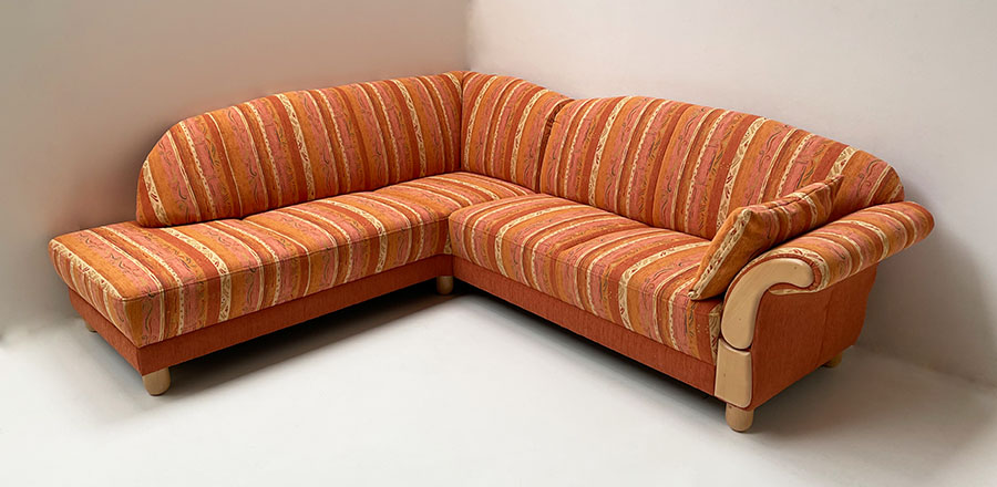 Eckgarnitur Davos Modell 440-42-55, Stellmaß 218/251 cm, Armlehne rechts abklappbar, Stoff Pocking terra, Rückseite mit Echtstoff bezogen, ohne Kissen