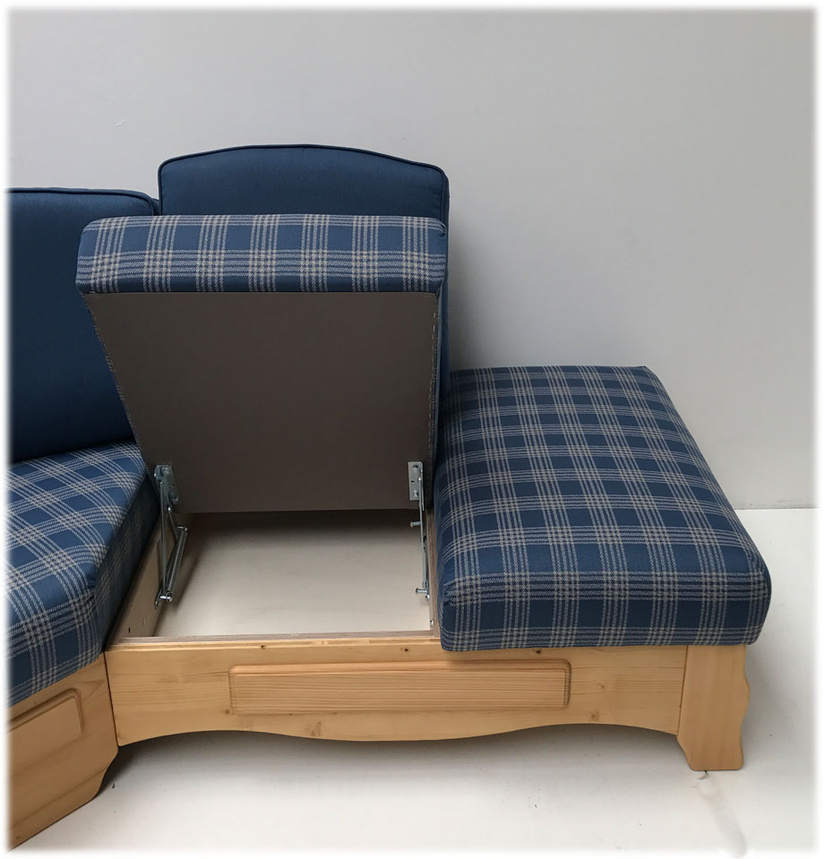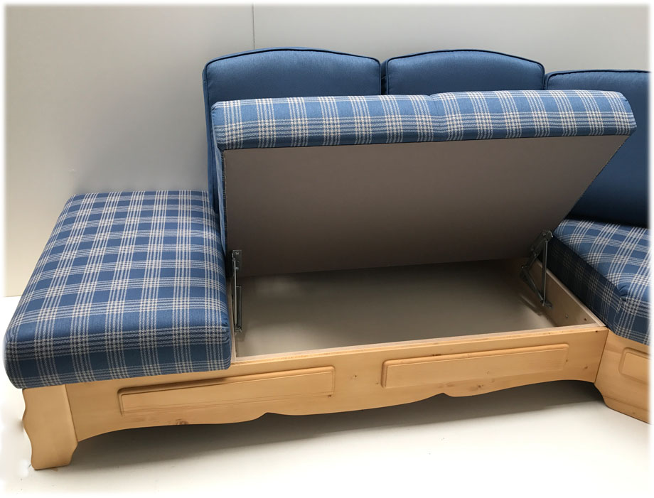 Gesamtmaß 270/215 cm, Sitz 110 und 55 cm und Anbauhocker rechts aufklappbar