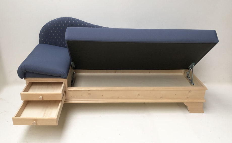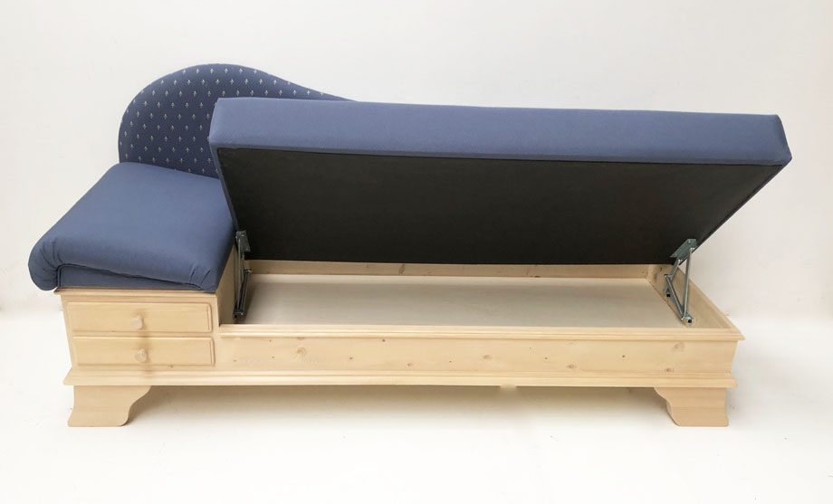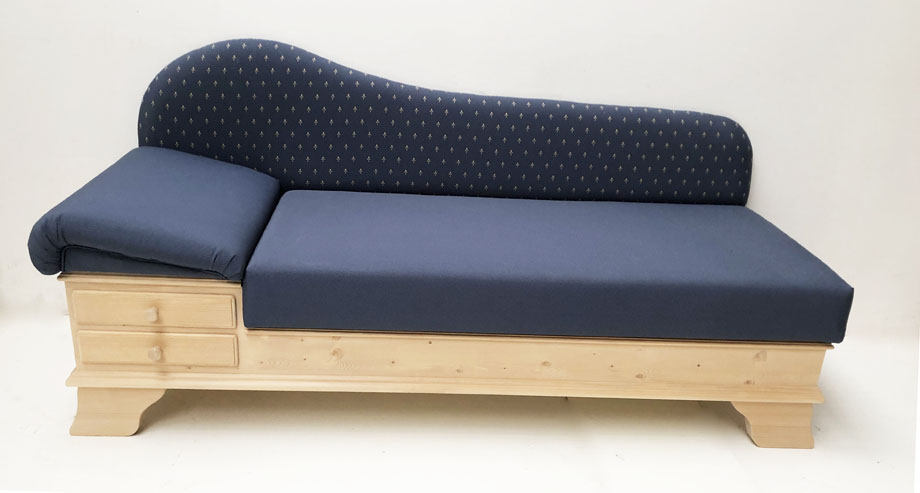 1 Liege Chiemgau , Kopfteil links, wenn man davorsteht und auf die Liege sieht !
